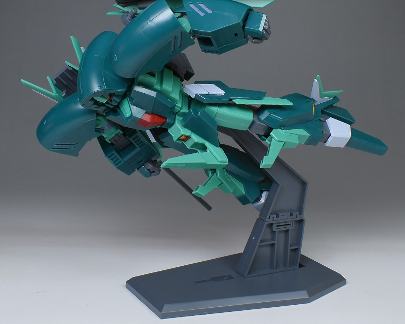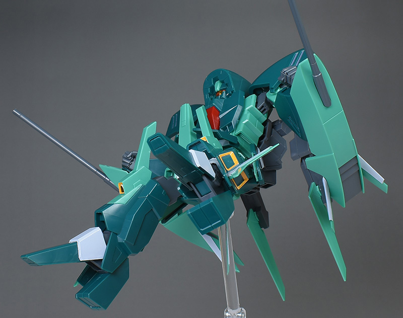 以上です。変形機構を持ちつつも、全く各部がバラけたりMS形態の形状が崩れたりすることはないですし、程よい可動域があるのでポーズも付けやすいです。全体的にトゲ感があるため、そのぶんポーズに迫力も出ますし、ポーズを付けると造形美が感じられて格好良いですね。