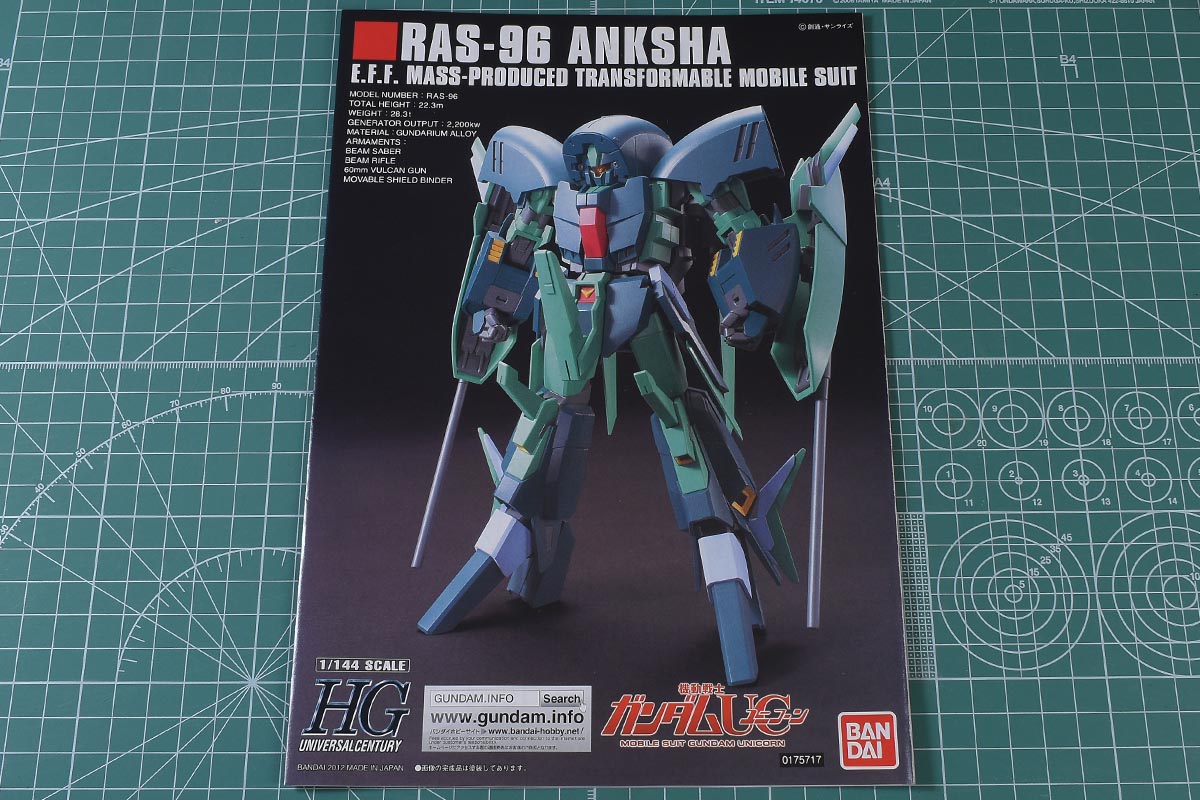 今回は、HG 1/144 RAS-96 アンクシャのパッケージ、説明書、ランナーのレビューをご紹介します!箱絵やカラーガイド等のレビューも合わせてご紹介していきます。では箱絵からどうぞ。