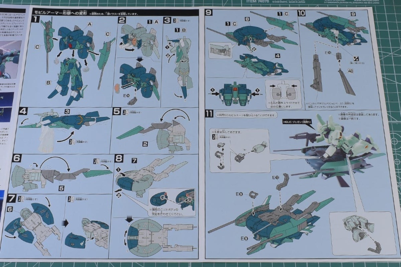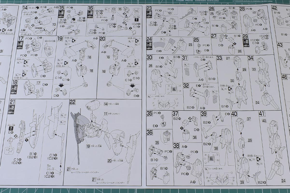 以上、説明書でした。アッシマーと同じ変形機構が採用されているため、他のキットとは少し構造が違っています。ですが変形が一部組み換え式なのでアッシマーほど複雑ではないですね。特に下半身はほぼMSそのままで構造もシンプル。このアッシマーフォーマットは寝そべり変形ではないタイプとしては、最も効率的で無駄がない変形と言えるかもですね。