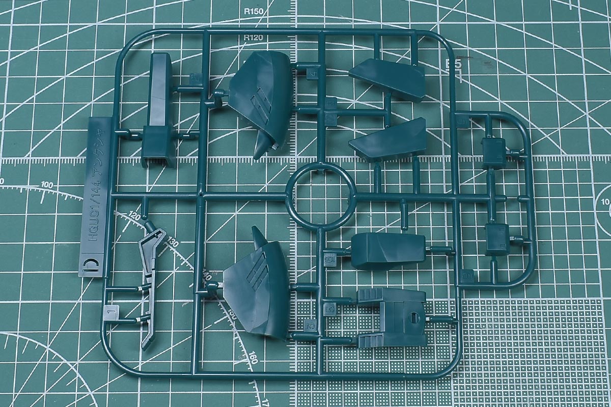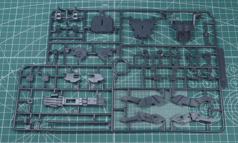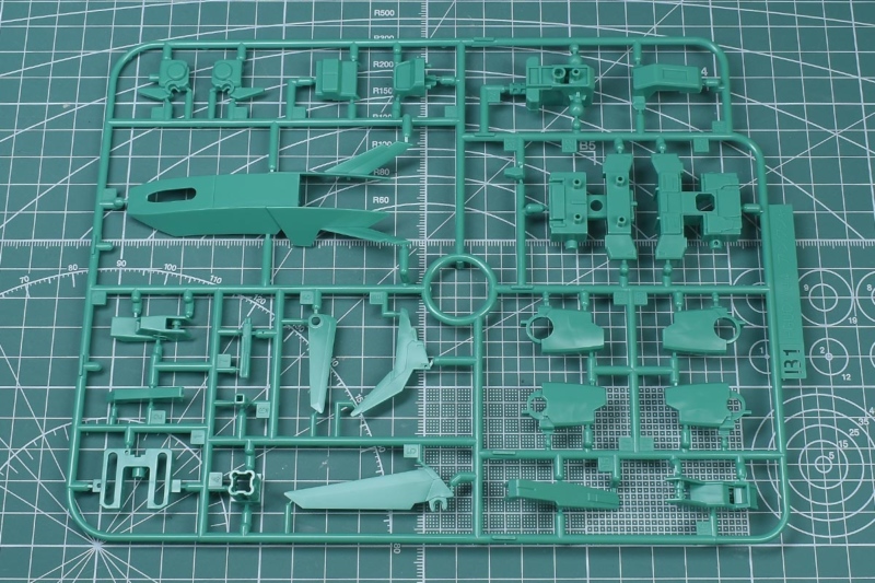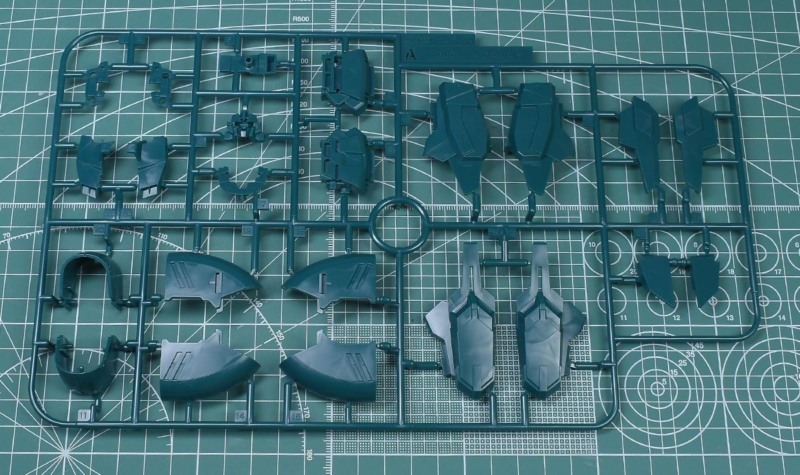 ↑Aランナー。グリーン成形色で、頭部や胴体部、腕部、脚部外装パーツ。
