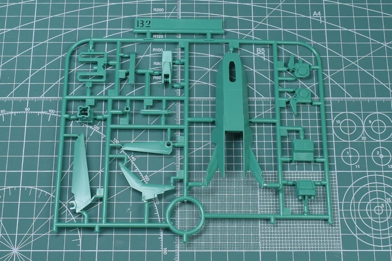 ↑B1、B2ランナー。ライトグリーン成形色で、胴体部や腕部、脚部パーツ、ムーバブル・シールド・バインダーパーツなど。