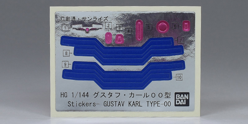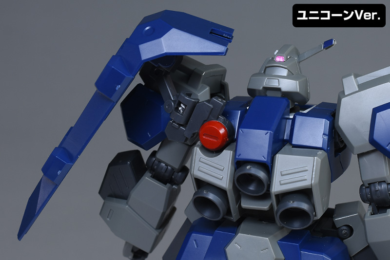 一部にHGUC グスタフ・カール(ユニコーンVer.)のパーツを流用しつつ、00型の青を基調としたカラーリング、特徴的な頭部や胴体部、肩部、脚部、バックパック、バズーカやビーム・ライフルといった武装類が新規造形で再現されています。また、ユニコーンVer.は関節にポリキャップが使用されていましたが、本キットはポリキャップ不使用。全てKPSによる関節構造となっています。