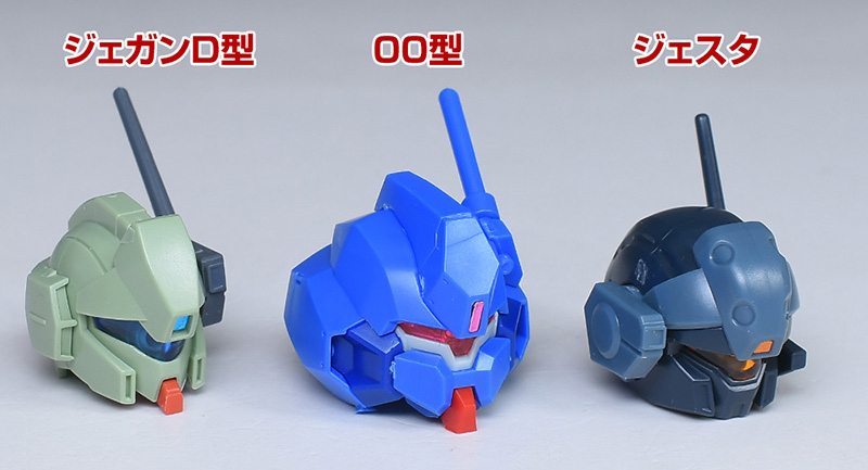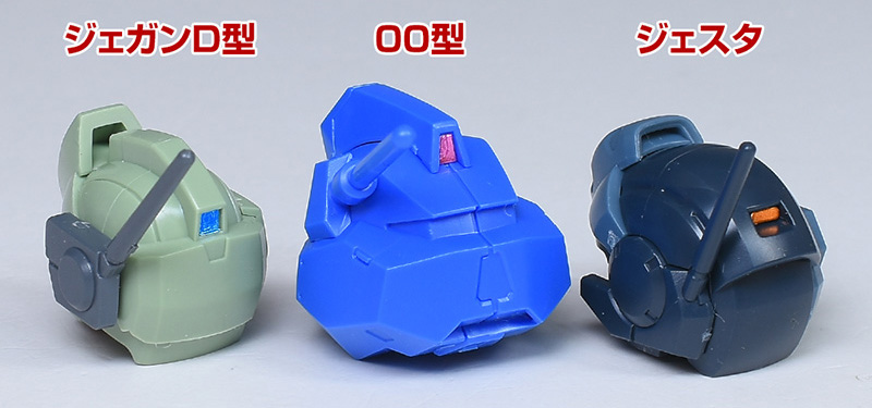 HGUCジェガンD型、HGUCジェスタの頭部とも並べて。並べて見ると似た感じがあり、その系譜であることが分かりますね。