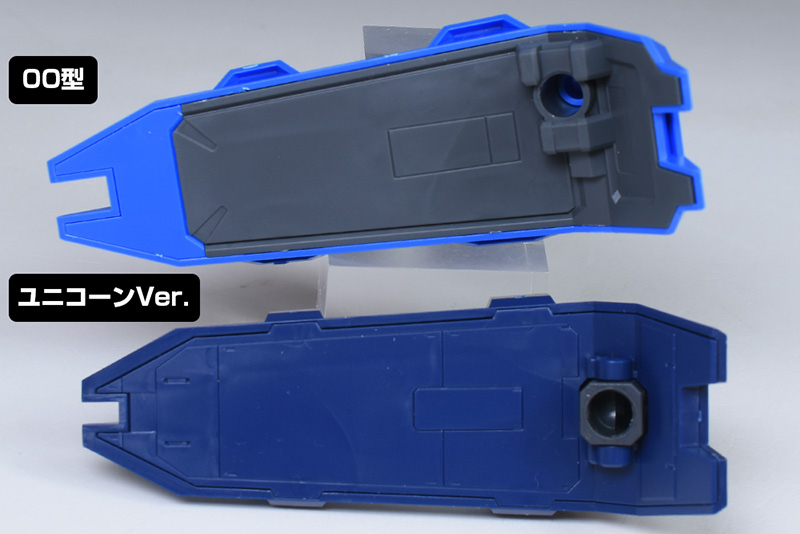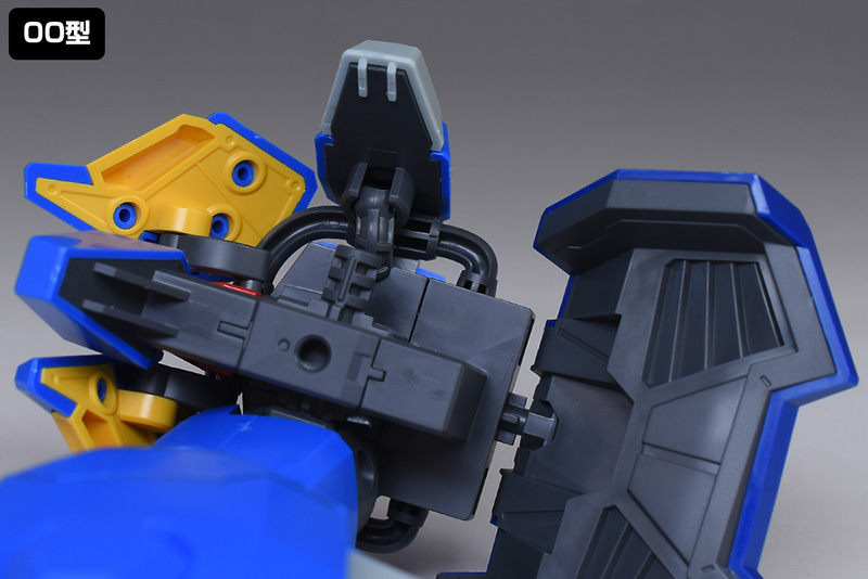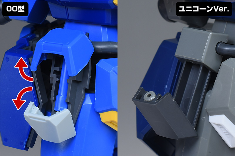 サイドアーマーにはユニコーンVer.と同様、サーベルホルダーが造形。ユニコーンVer.では下側のみが展開するのに対し、00型の外装は上下に展開する仕様になっています。