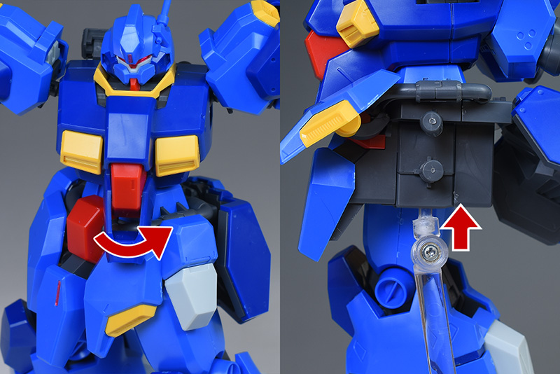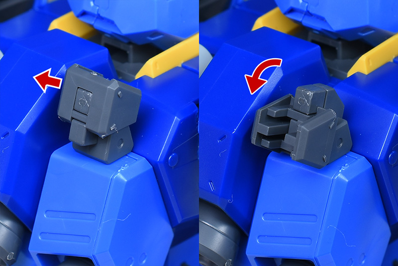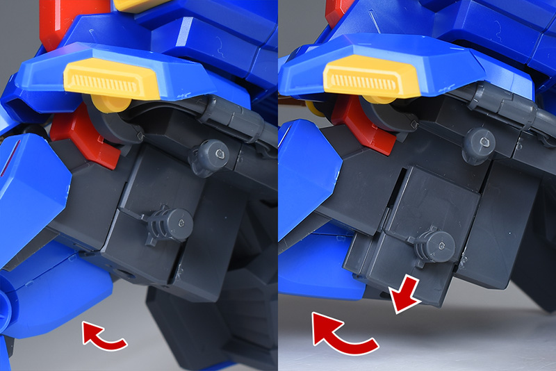 リアアーマーはユニコーンVer.と同様、上下に可動しますし、ボールジョイント接続でロールも可能です。