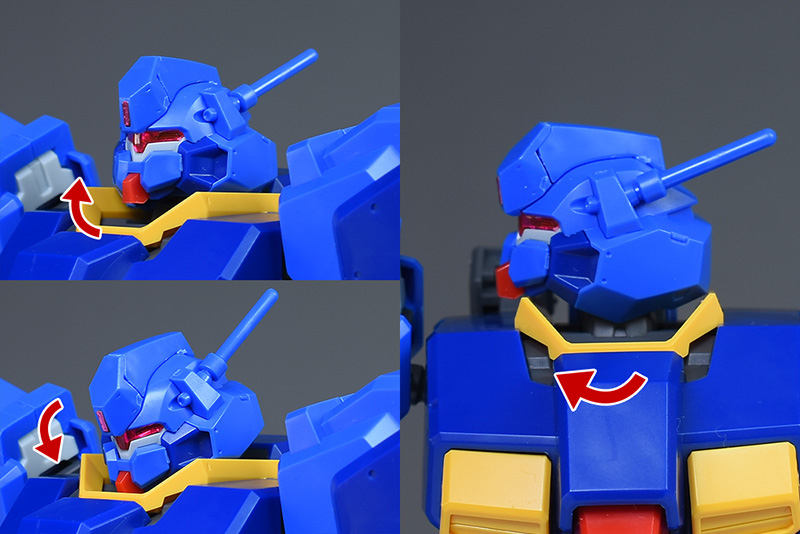 首はダブルボールジョイントで柔軟に可動。肩はユニコーンVer.と同構造で、ボールジョイントの受け口が外側に引き出せますし、前方に展開することもできます。受け口は上方にも可動。