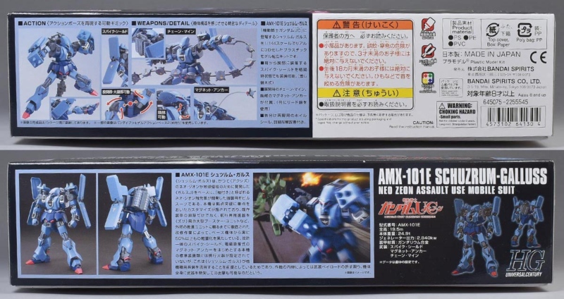 パケ絵はスパイク・シールドで打突攻撃を繰り出すシュツルム・ガルスの姿。背景はネェル・アーガマの甲板で、手前には攻撃を食らうジェガンD型、後方にはギラ・ズールも合わせて掲載されています。これはおそらく劇中のepisode7にて、ネェル・アーガマ襲撃時のワンシーンを描いたものかと。