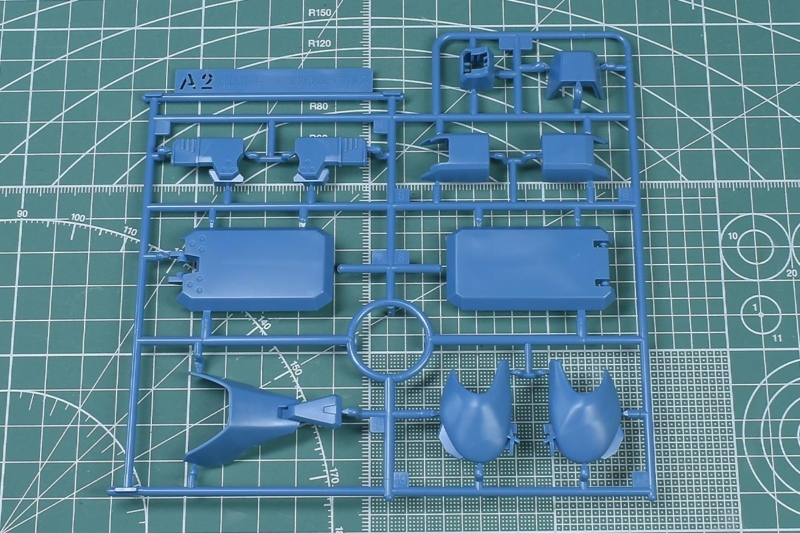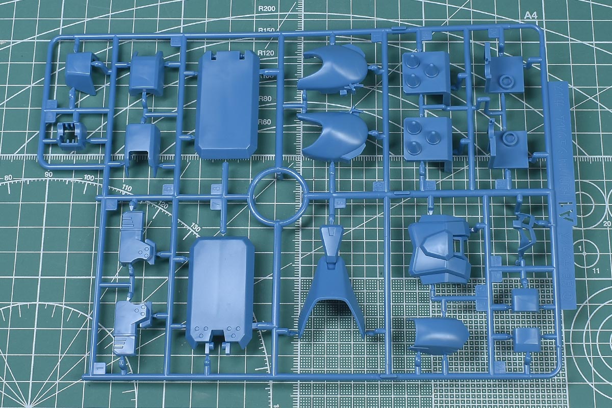↑A1、A2ランナー。ライトなブルー成形色で、頭部や胴体部、腕部、脚部の外装パーツ、スパイク・シールドパーツ。