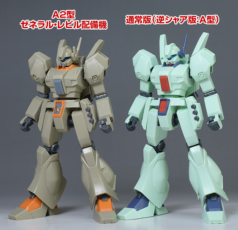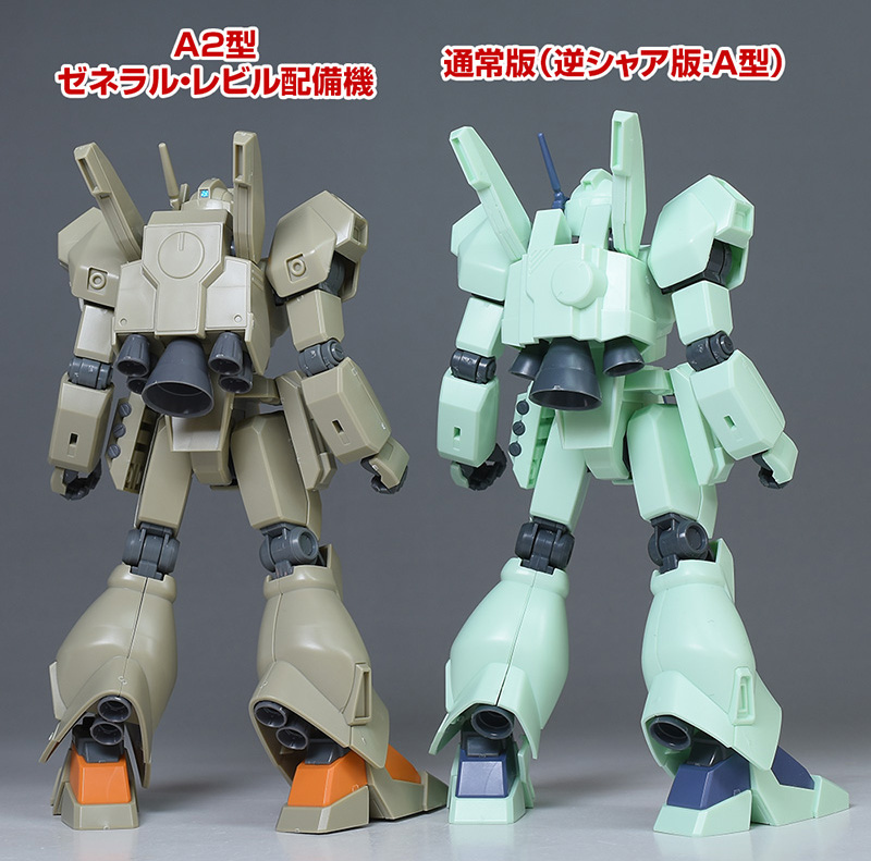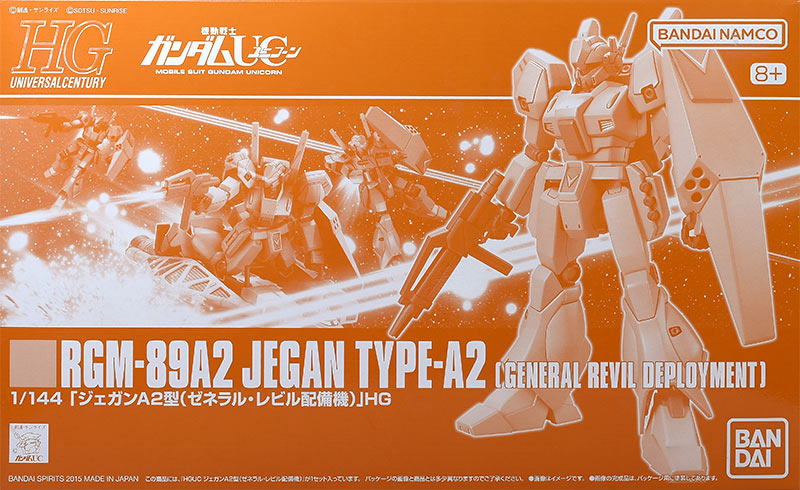 AE社が開発した地球連邦軍の量産型MS「ジェガン」のマイナーチェンジ機で、劇中では宇宙戦艦「ゼネラル・レビル」に配備。リゼルと共にネェル・アーガマとガランシェール隊を襲撃した機体「RGM-89A2 ジェガンA2型(ゼネラル・レビル配備機)」がHGUCでキット化。