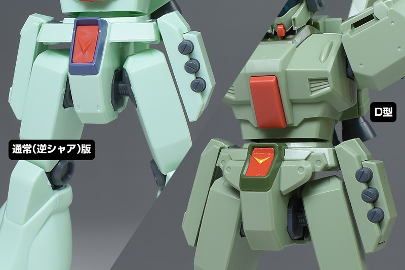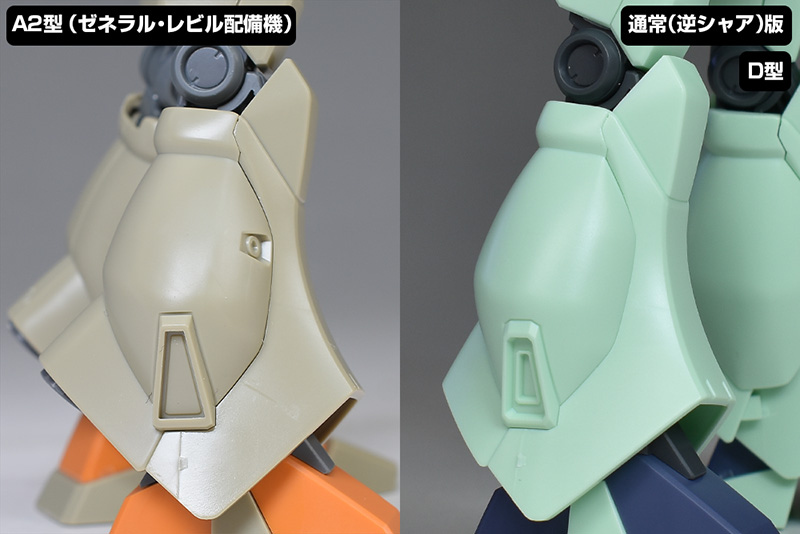 胸部・腹部を通常版、D型と比較して。この部分の形状は各種とも同じ。ですがゼネラル・レビル所属機は襟や腰部のオレンジカラーが目を引きます。