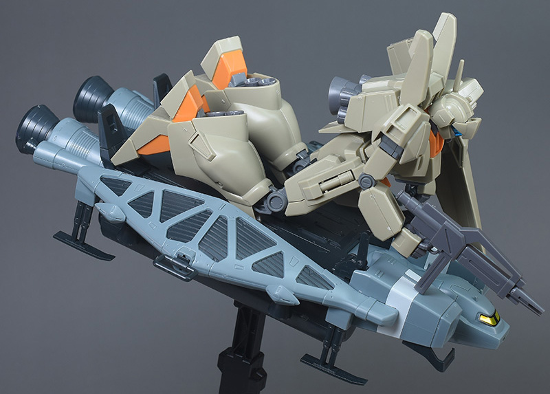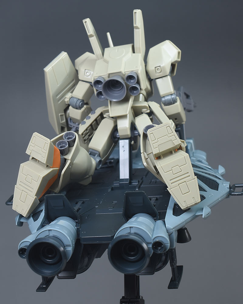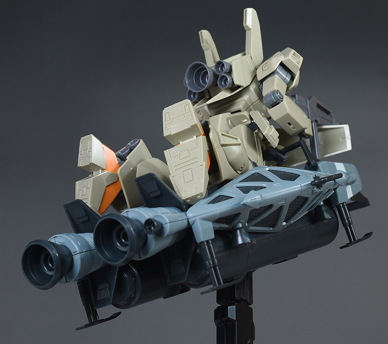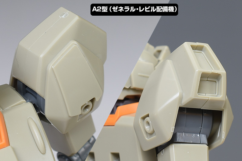 HGUCジェガン(エコーズ仕様)(2011年4月発売)※、HGジェガンAタイプ(F91Ver.)(R型)※(2015年5月発売)のパーツを流用しつつ、A2型の特徴的な頭部バルカンポッドや胴体部、肩部、脚部、バックパックなどが新規パーツを用いて再現されています。※大元はHGUCジェガン(2009年8月発売)