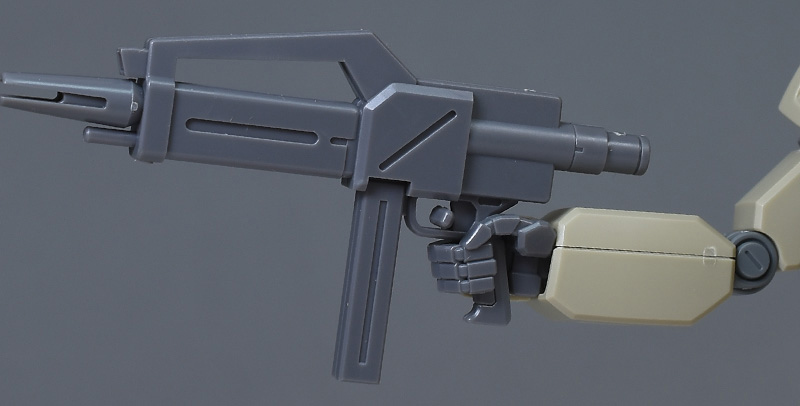ビームライフル。A2型ゼネラル・レビル配備機の主兵装です。短銃身構造が特徴で取り回しが良く、連射性に優れた武装で、接近戦や混戦で威力を発揮するとのこと。他のHGUCジェガンシリーズにも付属している定番の武装です。