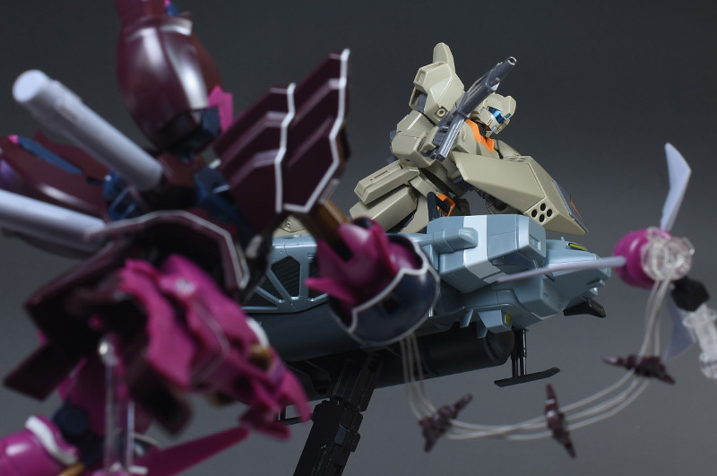 安定のジェガンフォーマットでポーズが決まりやすいですし、ガッチリとした造りで取り扱いやすいです。98式ベースジャバーとの相性もバッチリ。劇中ではローゼン・ズールにひたすらやられるだけでしたが、キット化されたことでその鬱憤を十分に晴らすことができるのもなんか嬉しいですね。