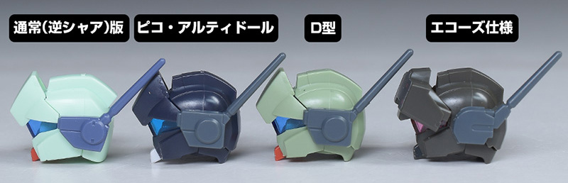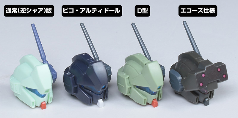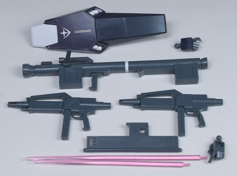 エコーズ仕様やHGUCジェガン(逆シャア版)のパーツが余剰で付属。頭部や胸部パーツを組み替えることで、エコーズ仕様のカラバリを再現することができます。