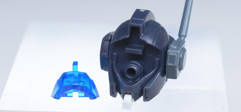 頭部内部には1つ目状のセンサーモールドが造形。クリアパーツ越しでもメカニカルなディテールが確認できるようになっています。バイザーはクリアブルー成形色での再現。