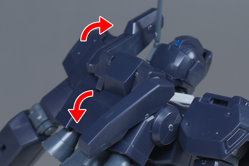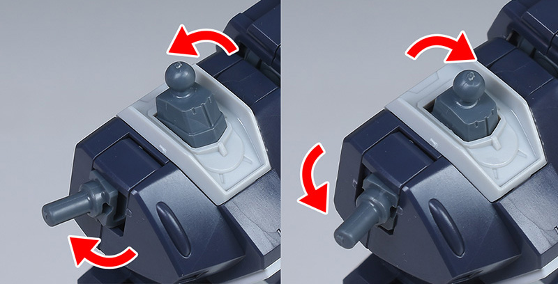 フレキシブルスラスターの基部は1ダボ接続で前後に広めにスイング可能。表情を変化させることができます。