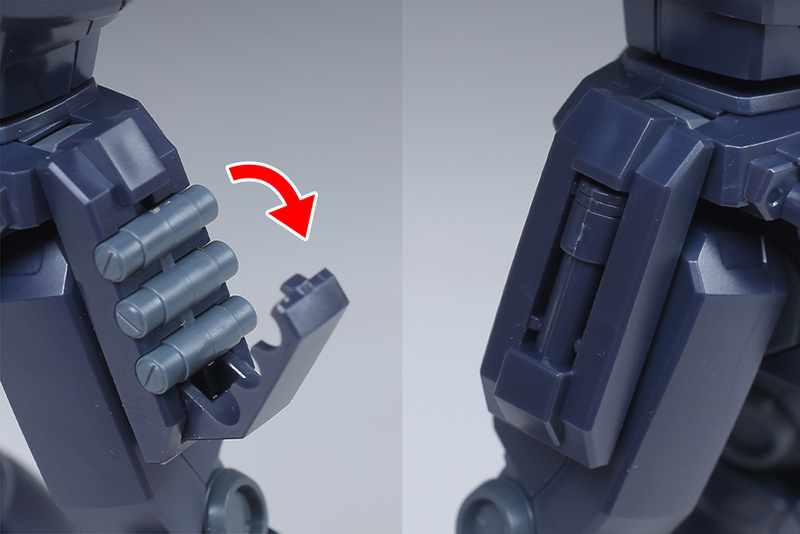 3基のグレネードは1個パーツ構成ですが、個別にダボがあるので切り離して見栄えを良くするのもあり。