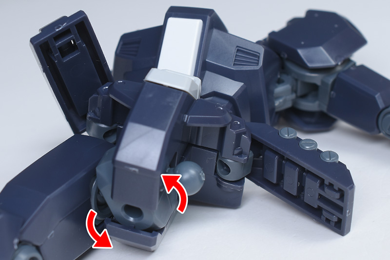 脚の付け根(ボールジョイント受け口)は少しスイング可能。少しだけ脚部可動の自由度が増しています。