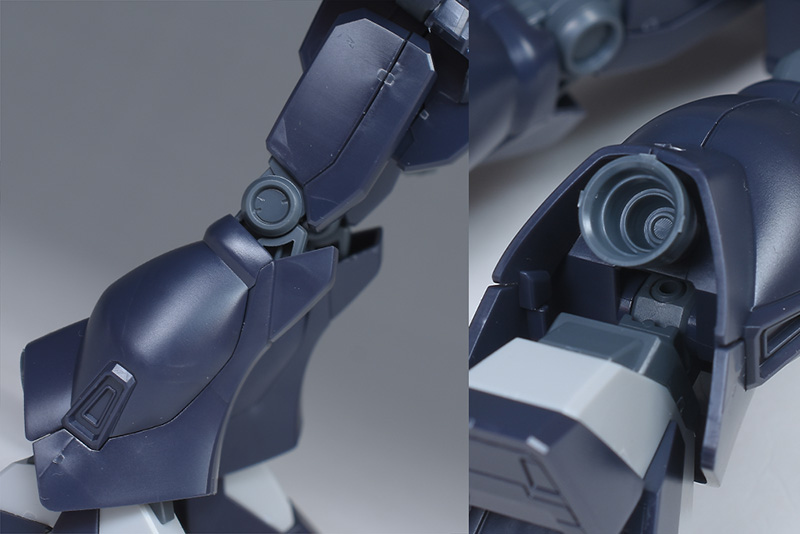 ショルダーアーマーは前後の組み合わせで上部と側面に合わせ目ができます。内部パーツを挟むので、合わせ目を消す場合は後ハメなどの加工が必要。側面ダクトは起伏が細かいので、合わせ目を消す場合は細かな処理が必要です。