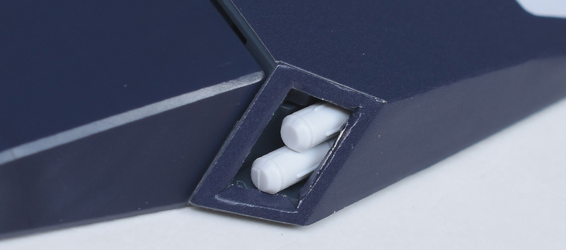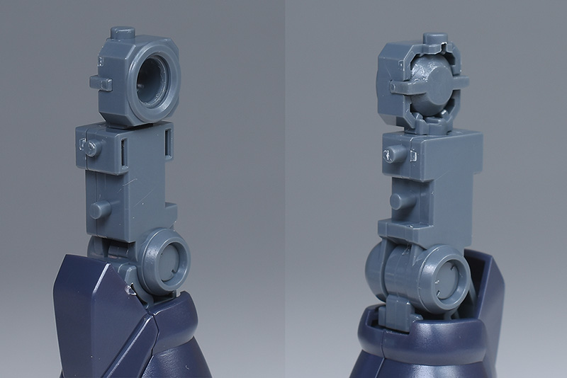 上部フレキシブルスラスターは2個パーツ構成。合わせ目は内側でモールド化されています。上部のダクト内部はふちをホワイト、内側をグレーに塗り分けが必要です。