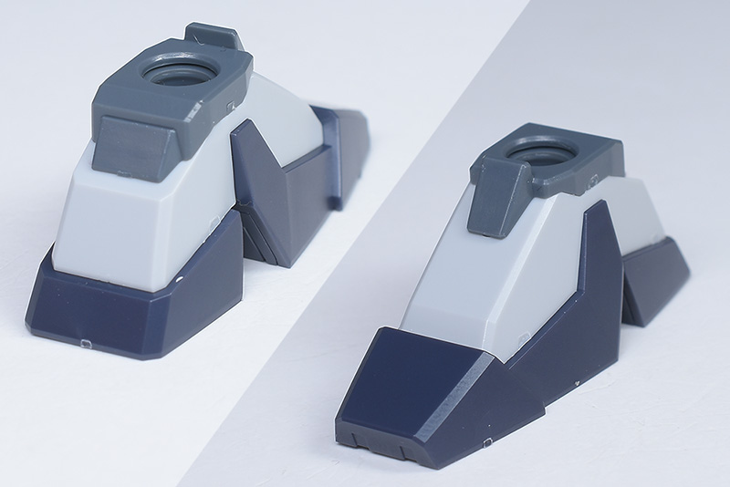 足裏は1枚パーツ構成できっちりと蓋がされています。表面にはメカニカルなモールドが造形。公式ページの塗装見本では足裏が細かく塗り分けられていました。
