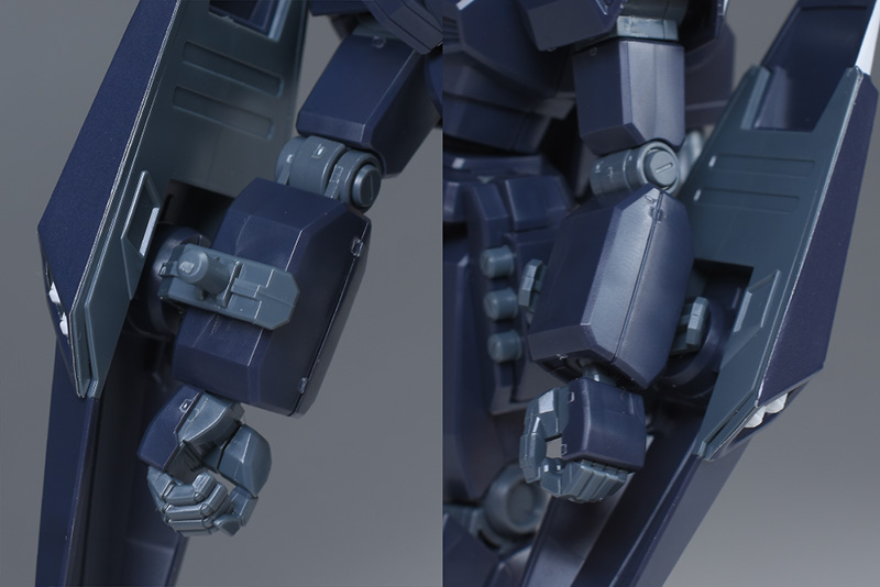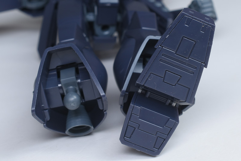 脚部は他のHGUCジェガン系と同形状。程よく厚みを持ちつつ、全体的にモールドが少なくシンプルなデザインで造形されています。ダークパープル基調で独特の渋みがありますね。