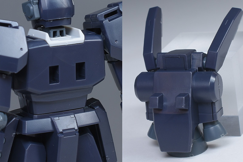 バックパックとジェガン本体との接続はHGUCジェガンシリーズ共通。角型2ダボ接続です。