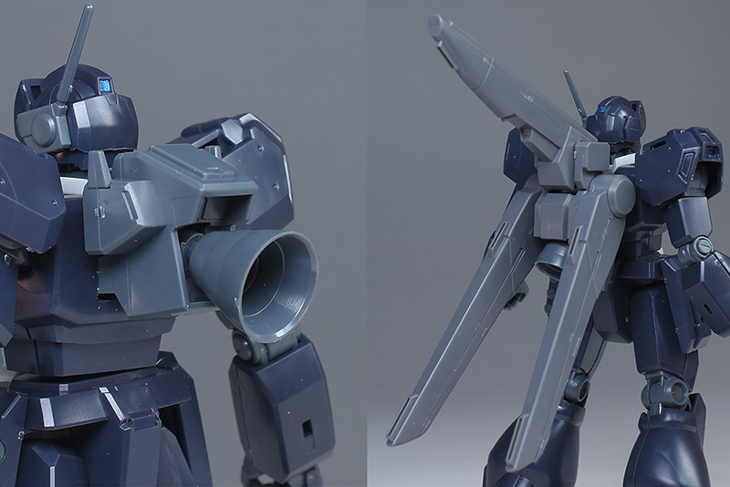 ですが劇中では殆ど?使用していないバズーカやシールドが付属するため、ポージングの幅は十分にありますし、ビーム・ライフルが二丁付属するので、他のジェガンでは殆ど見られない両手持ち射撃も再現することができます。ただのカラバリに留まらず、カラーリングや造形、装備など、色んなところでジェガンの可能性や魅力を再認識させられるキットなのが良いですね。