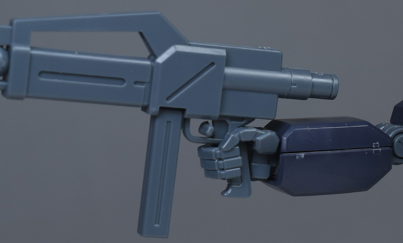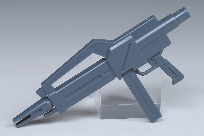 ビーム・ライフル。連邦MSの定番ビーム携行火器です。取り回しを重視した短銃身の構造が特徴で、連射性に優れ、接近戦や混戦で威力を発揮するとのこと。HGUCのジェガン系各種に付属しているものと同じで、ミリタリー調のシンプルなビーム・ライフルになっています。