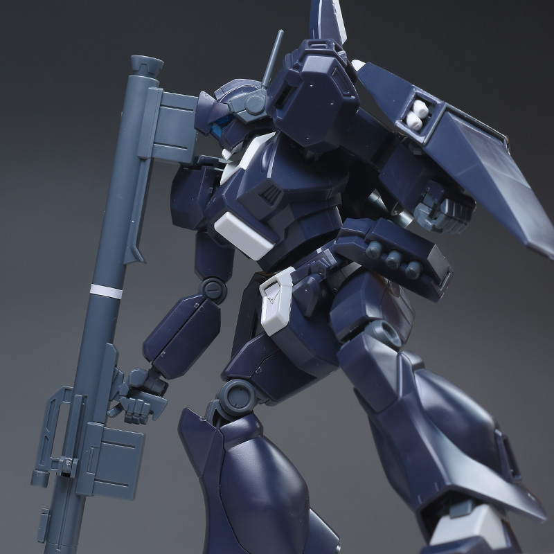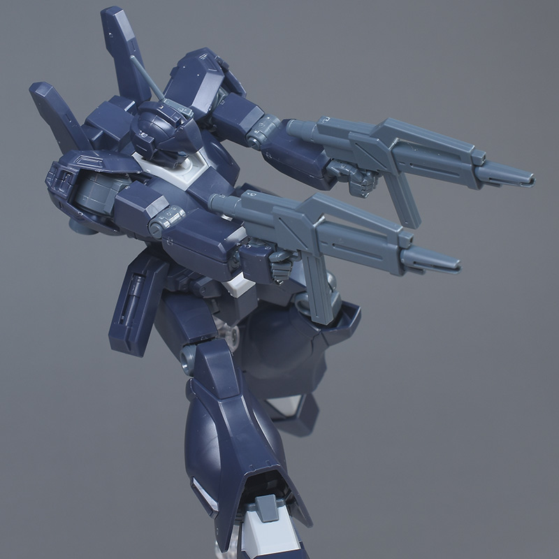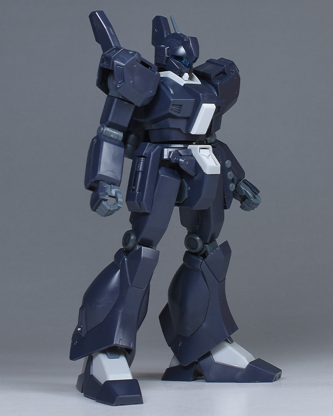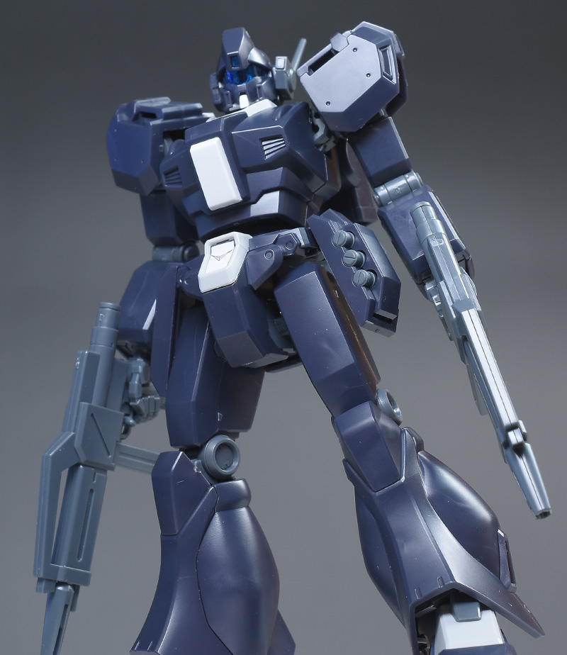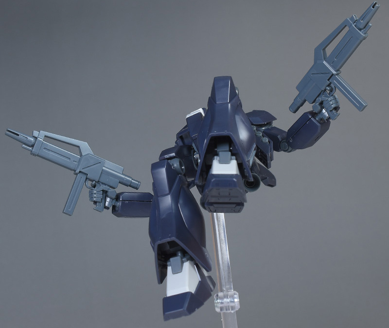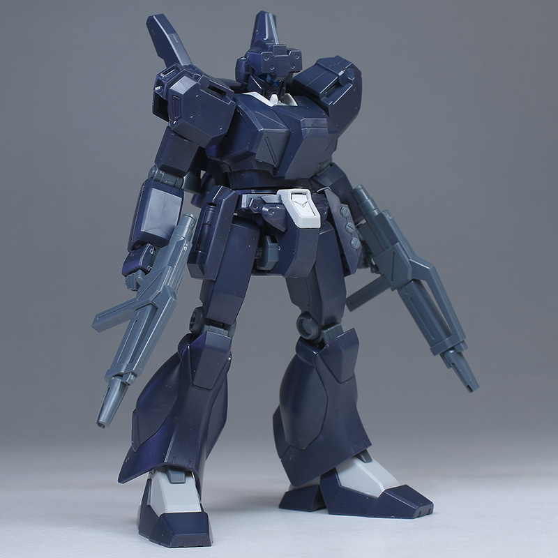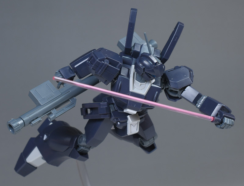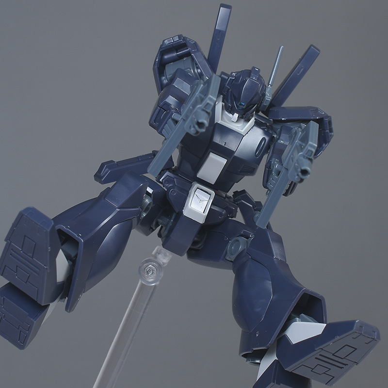 HGUC ジェガンD型(2014年5月発売)※と本体形状は同じですが、レイヴン所属機特有のダークパープルカラーが成形色で、二丁拳銃を再現するための左手用武器持ち手とビーム・ライフルが新規造形で再現されています。※大元はHGUCジェガン(逆シャア版)(2009年8月発売)