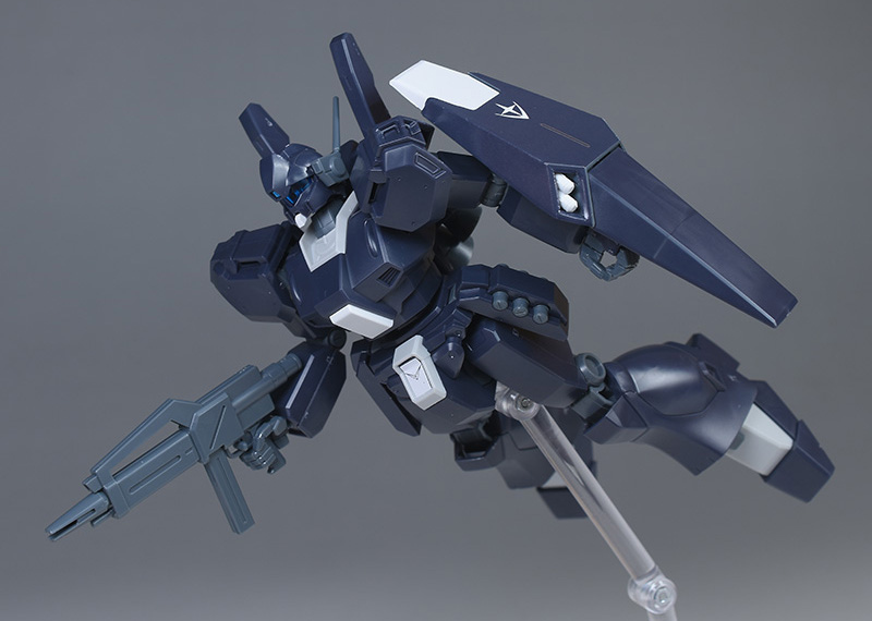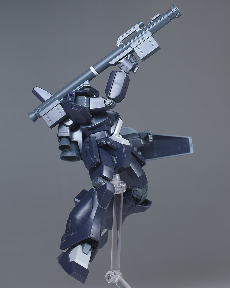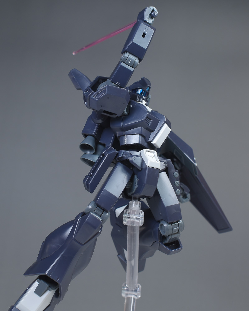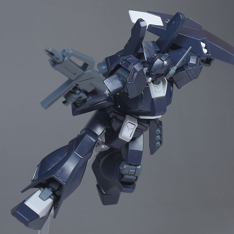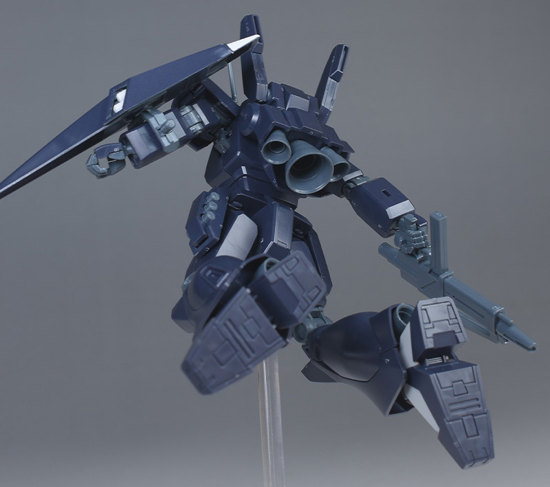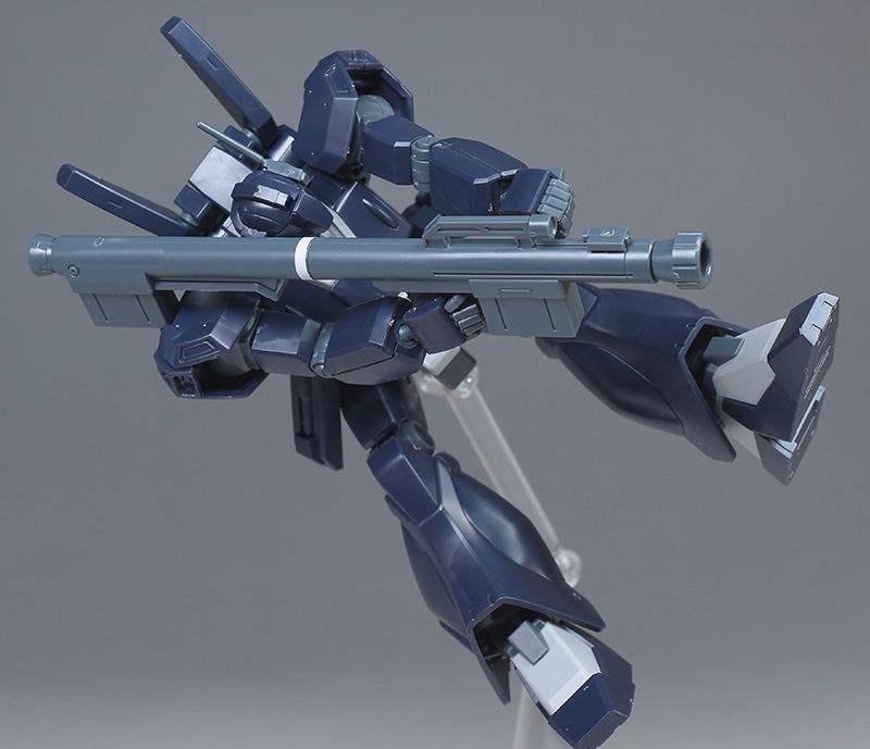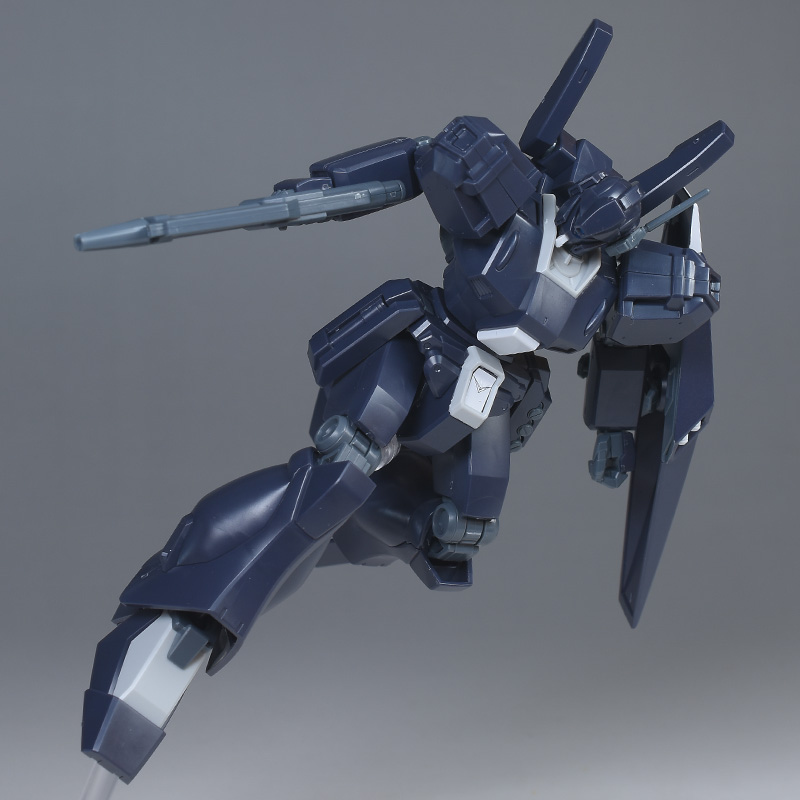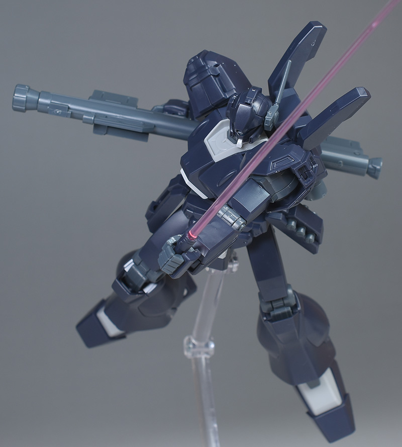 HGUC ジェガンD型(2014年5月発売)※と本体形状は同じですが、レイヴン所属機特有のダークパープルカラーが成形色で、二丁拳銃を再現するための左手用武器持ち手とビーム・ライフルが新規造形で再現されています。※大元はHGUCジェガン(逆シャア版)(2009年8月発売)