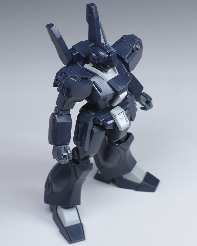 以上です。特別目立つようなカラーリング、造形ではないシンプルなジェガンですが、顎や腹部の白がワンポイントで良いアクセントになっていますし、深いダークパープル基調のボディカラーに渋みや味があって良いですね。意外にもこのカラーリングが格好良く、ジェガンとの相性がかなり良いようです。