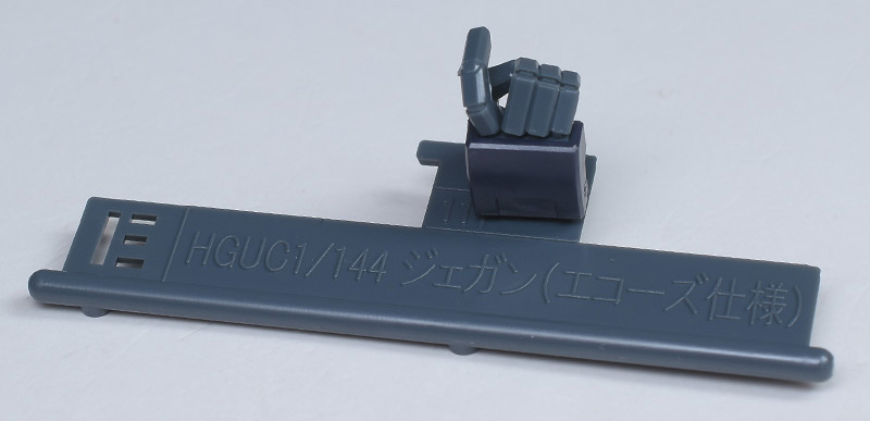 Eランナーはエコーズ仕様から流用でタグがプレート型になっています。一部にジョイント穴があるので、使用していないハンドパーツを組み付けておくことで紛失が防げます。