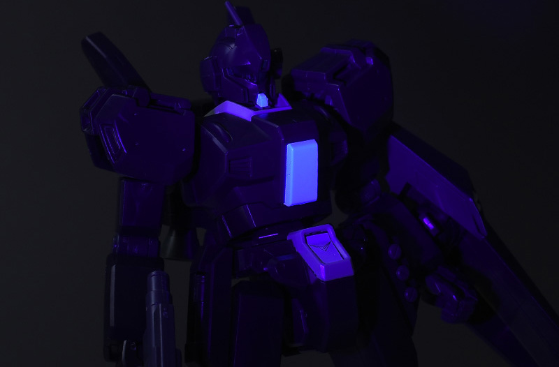 ホワイト成型色のパーツのみ、ブラックライト(UVライト)で照らすと発光するような感じでした。