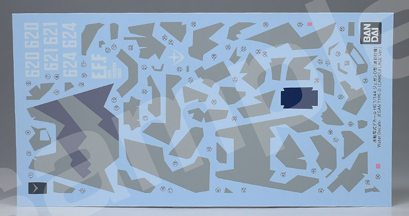 HGUC ジェガンD型(2014年5月発売)※のカラバリですが、迷彩仕様特有のカラーリングが成形色で再現されています。BR-78Aビーム・ライフル(HGUC マラサイからの流用)、スプリッター迷彩を再現するための水転写デカールも付属。※大元はHGUCジェガン(逆シャア版)(2009年8月発売)