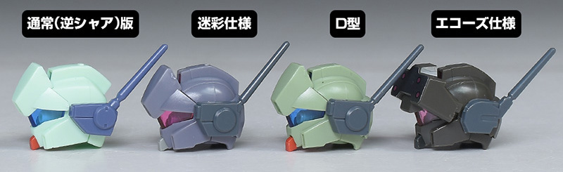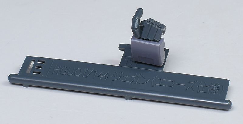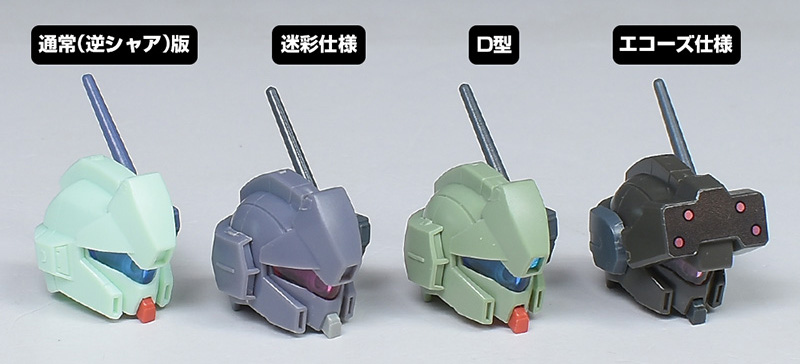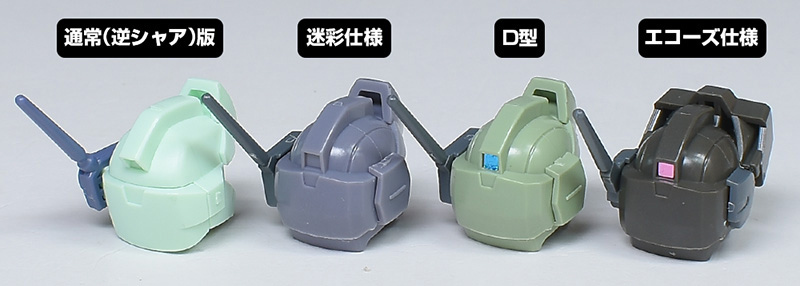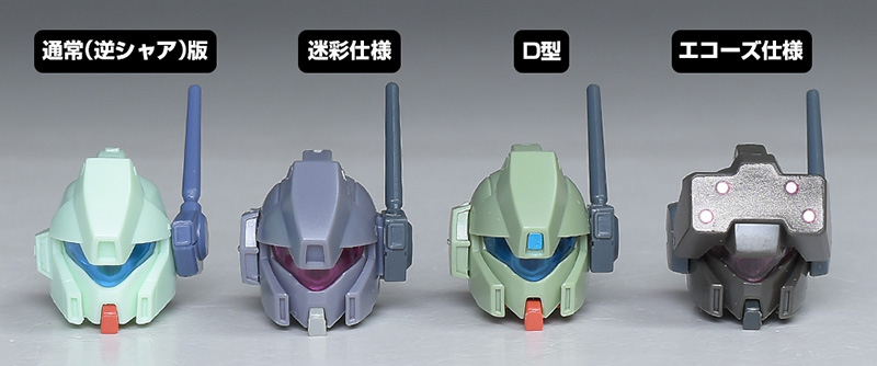 エコーズ仕様やHGUCジェガン(逆シャア版)、HGUCマラサイ用のパーツが余剰で付属。頭部や胸部パーツを組み替えることで、エコーズ仕様のカラバリを再現することができます。逆シャア版は再現不可。