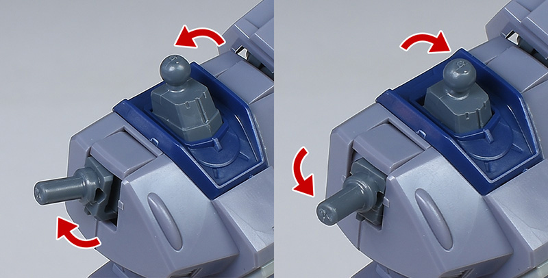 フレキシブルスラスターの基部は1ダボ接続で前後にスイング可能。表情を変化させることができます。