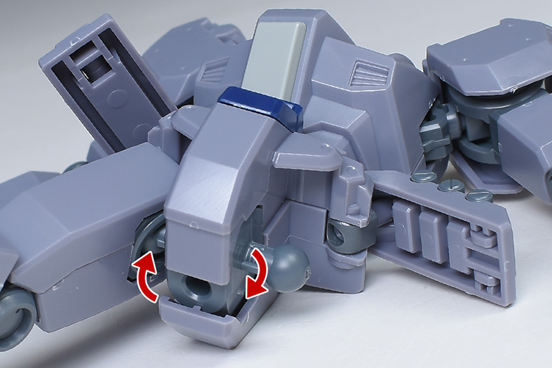 裏面の造りは簡易的。ですが一応簡単なモールドが造形されていてそれなりのディテールはあります。ジョイント部分はポリキャップ接続でロール可能。裏面の一部は水転写デカールで補えますが、一部装甲はグレーに塗り分けが必要です。
