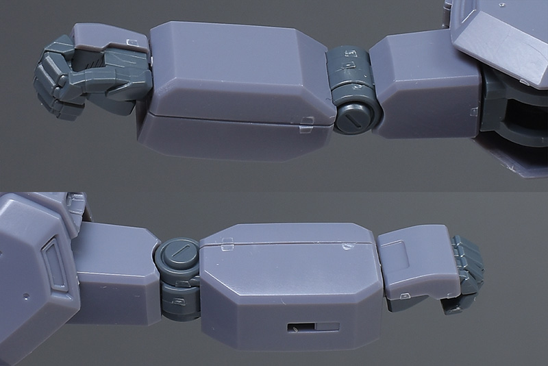 上腕は筒型で合わせ目はなし。前腕は前後の組み合わせですが、側面の合わせ目は段落ちモールド化されていて造りが良いです。