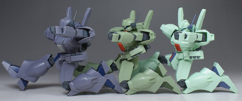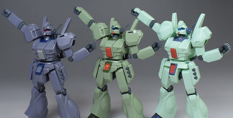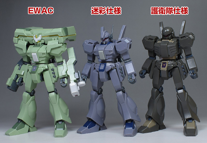 HGUC EWACジェガン、HGUCジェガンD型(護衛隊仕様)とも並べて。ジェガンはガンプラの中でも特にバリエーション機が多いですが、長期運用された主力量産機で汎用性が高いというのもその要因の一つですね。