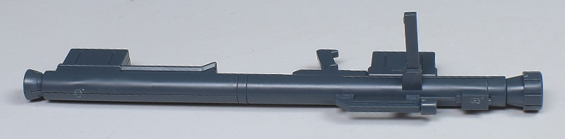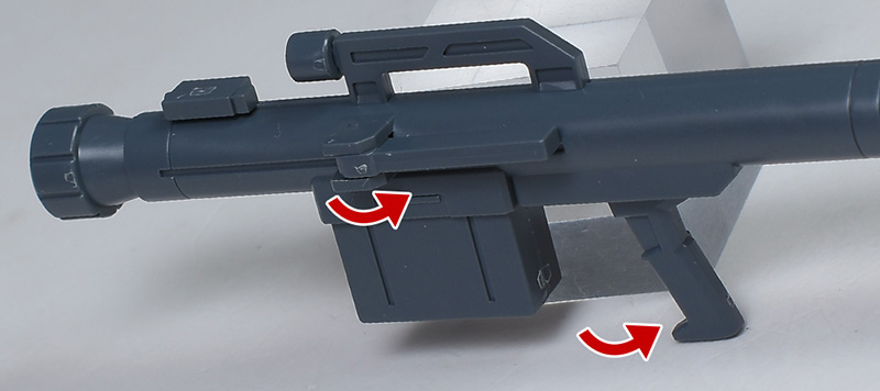 汎用バズーカ。実弾を発射する無反動砲になります。グリップに予備弾倉を配し、複数種の弾頭に対応した実体弾携行火器で、ジェガンだけでなく様々な機種で運用。D型やエコーズ仕様に付属しているものと同じでミリタリー感の強いデザインで造形されています。