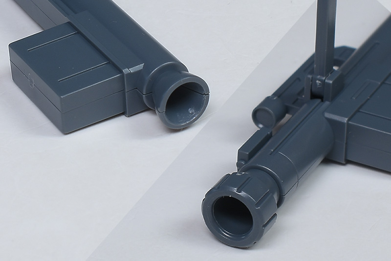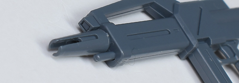 本体部分は簡単な左右の組み合わせで上下に合わせ目ができます。簡易的な構造なため、マガジン(Eパック)の脱着ギミックなどはありません。