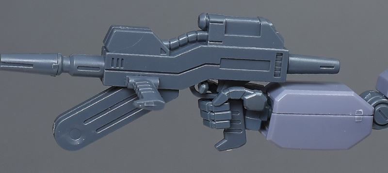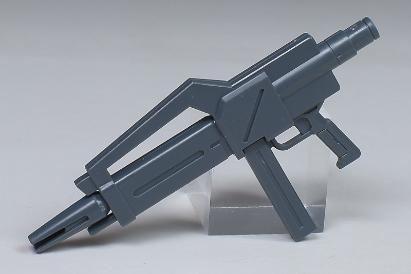 ビーム・ライフル。D型やHGUCジェガン(逆シャア版)、エコーズ仕様などジェガン各種に付属しているものと同じで、連邦MSの定番ビーム携行火器になります。取り回しを重視した短銃身の構造が特徴で、連射性に優れ、接近戦や混戦で威力を発揮。