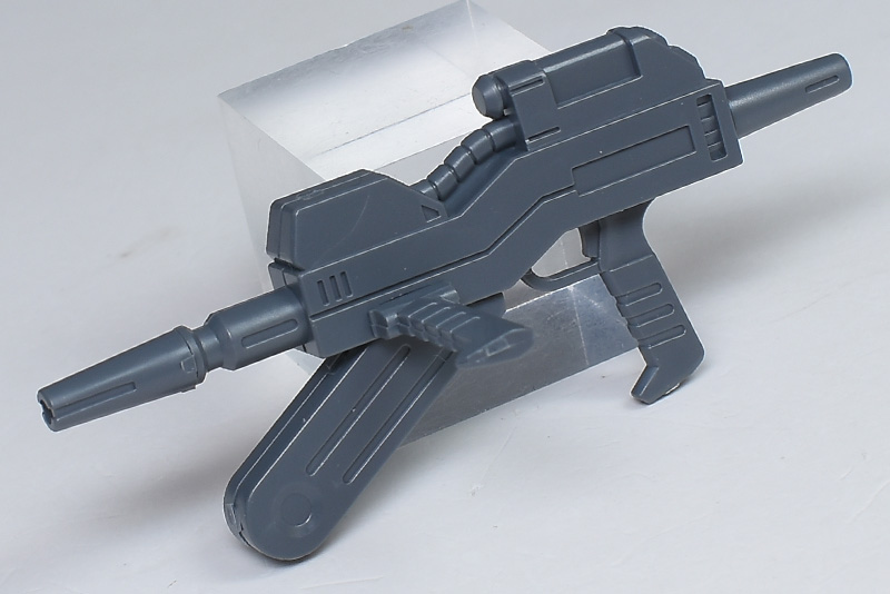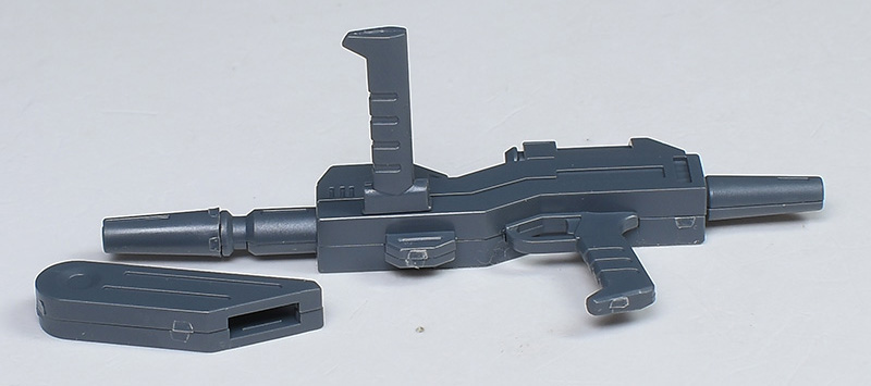 BR-78Aビーム・ライフル。グリプス戦役時などにマラサイやハイザックが使用していたものと同じです。劇中でのシャイアン基地護衛の際もこのビーム・ライフルを装備していました。銃身下部から前方に伸びるEパックが特徴的。HGUCマラサイからの流用になります。