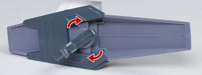上部フレキシブルスラスターは2個パーツ構成ですが、合わせ目は内側でモールド化。ダクト内部はホワイトとグレーに塗り分けが必要です。ダクト内部がフラットなので、スリットプラ板を貼り付けてディテールアップしても面白そう。