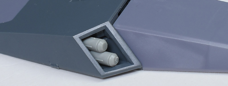 ミサイル・ランチャーの弾頭は別パーツ化されていますが、ライトグレー成形色での再現なのでダークグレーに塗り分けが必要です。