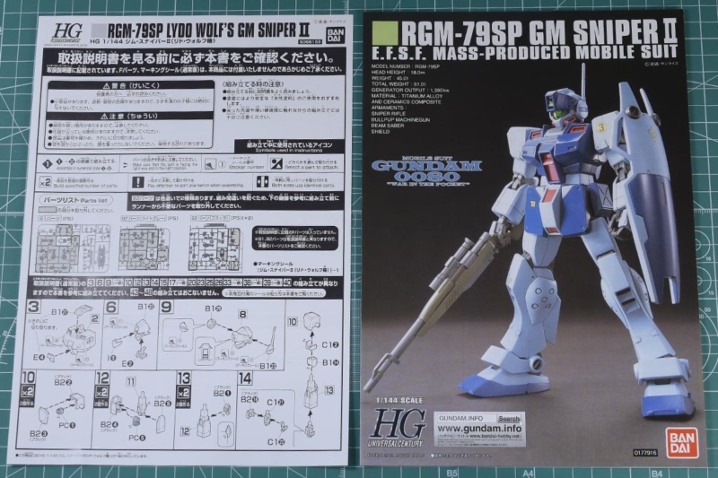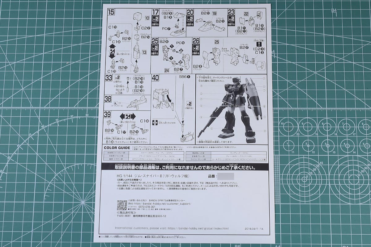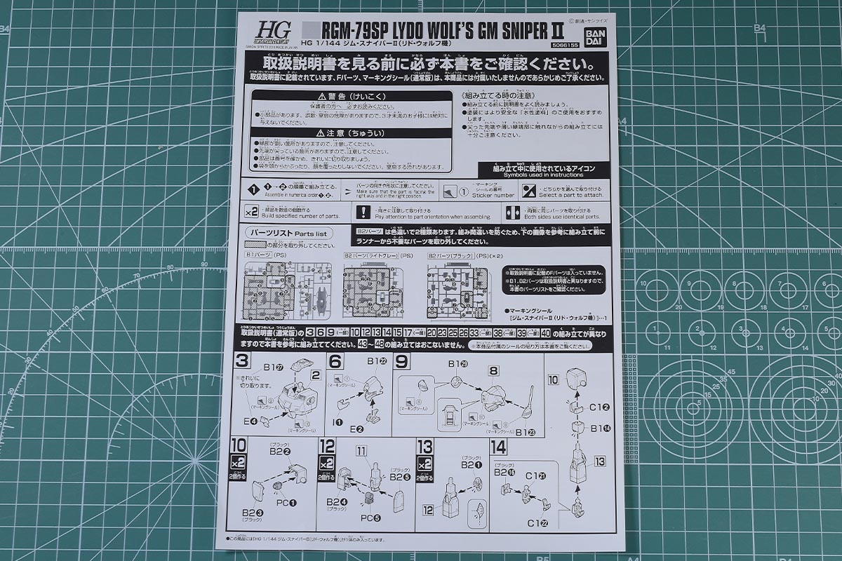 説明書はリド・ウォルフ機用のペラ説明書と通常のHGUCジム・スナイパーⅡ用の説明書が付属しています。ここではリド・ウォルフ機用の説明書のみのご紹介となりますので、HGUCジム・スナイパーⅡの説明書については下記リンク先をご参考ください。