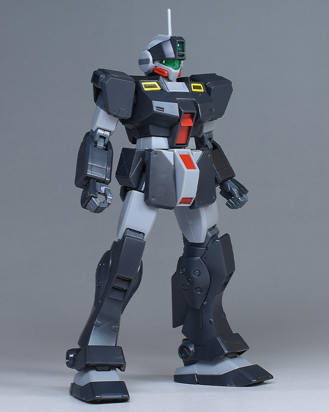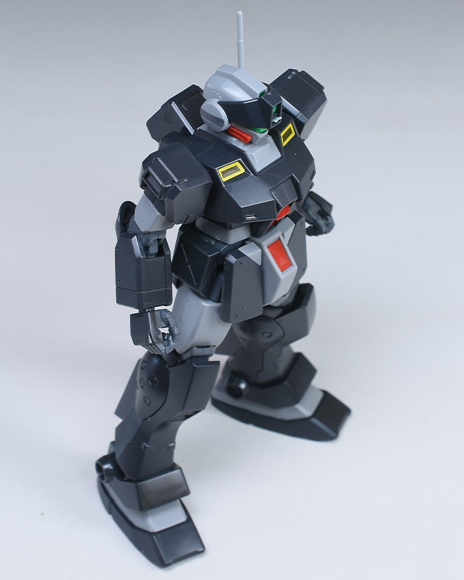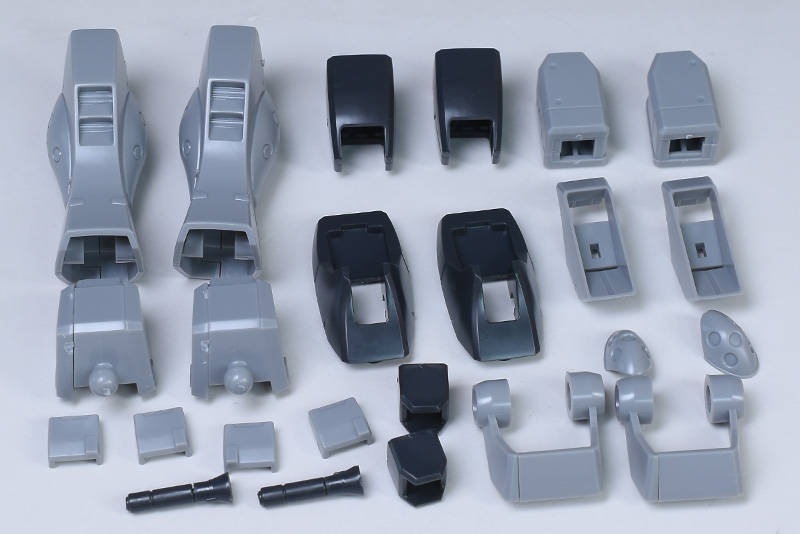 成形色はダークグレーとライトグレーを基調に、頭部や腹部、腰部にレッド、頭部バイザーやゴーグルなどにクリアグリーンを配色。内部や関節、武装類はグレー成型色での再現となっています。