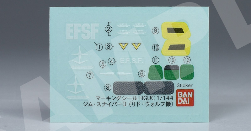 専用のマーキングシールが付属。連邦やコーションマークなどが収録されています。特にリド・ウォルフのパーソナルエンブレムのようなものは収録されていません。