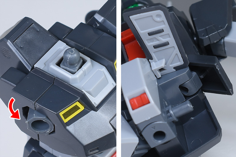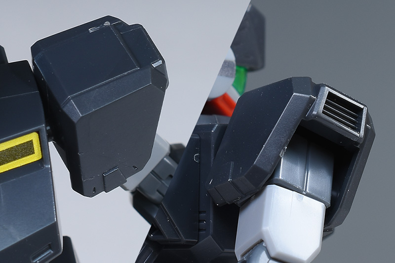 ショルダーアーマーは前後の組み合わせですが、合わせ目は端でモールド化。合わせ目消しが必要なく完成度が高いです。側面ダクトは赤く塗り分けが必要。